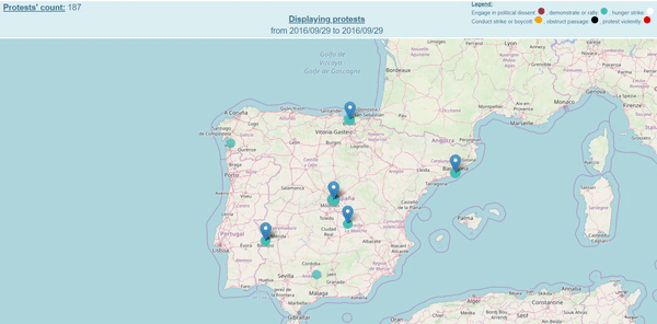 We can see that the protests mainly took place in Madrid and Barcelona and were strongly more important in 2017 around the referendum.